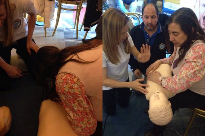 Successivamente, i presenti sono stati divisi in piccoli gruppi, a ciascuno dei quali è stato illustrato, con prove pratiche eseguite su appositi manichini, le manovre di disostruzione delle vie aeree.